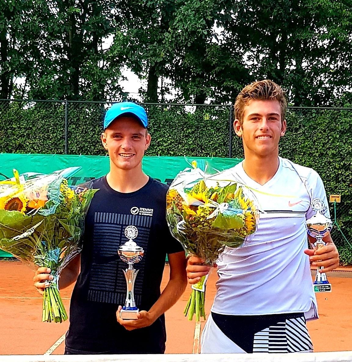 De eerste set ging gelijk op, maar op 4-4 plaatsten Frank en Thijmen de beslissende break en de set werd met 6-4 gewonnen. In de 2e set werd een 1-4 achterstand goedgemaakt en de set uiteindelijk met 7-5 gewonnen. Zo sleepte Frank zijn 2e nationale tennistitel binnen.